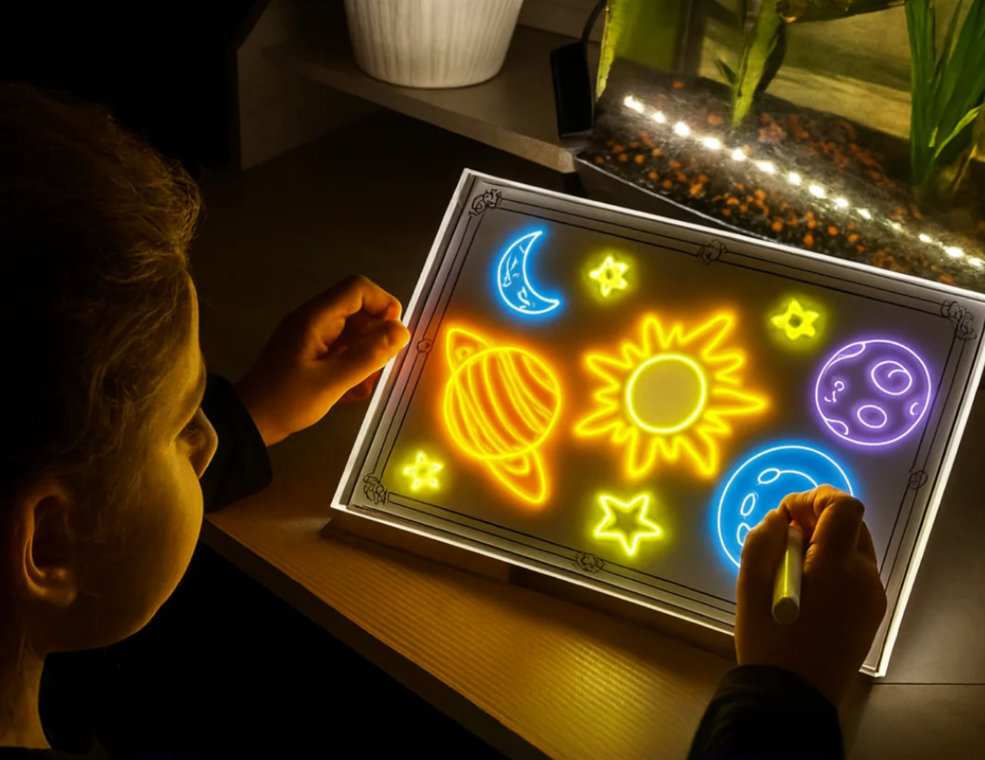 Imaginez le sourire de votre enfant quand il découvre son dessin briller dans le noir…